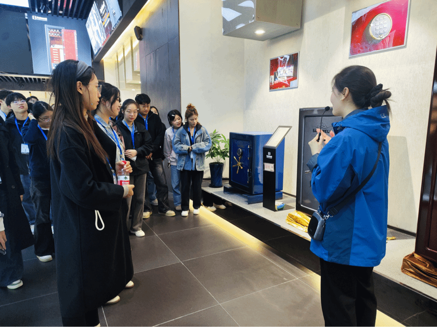 活动伊始,盛威国际公司代表对宁大MIB师生及带队教师的到来表示热烈欢迎。在工作人员的引导下,师生们首先参观了盛威国际的保险柜博物馆,通过一件件展品了解企业的发展脉络与历史积淀。随后,工作人员详细介绍了盛威国际的创业历程,并分享了公司秉持的核心价值理念——“创造安全,感受安心”,展现了一家跨国企业深厚的文化底蕴与社会担当。