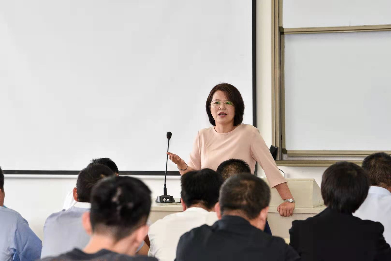 聘任仪式后,兼职导师与国际商务2020级新生移步叶耀珍楼106教室,参加国际商务专业硕士师生见面会暨学科建设研讨会。会议由国际商务专业学位点负责人杨丽华教授主持。