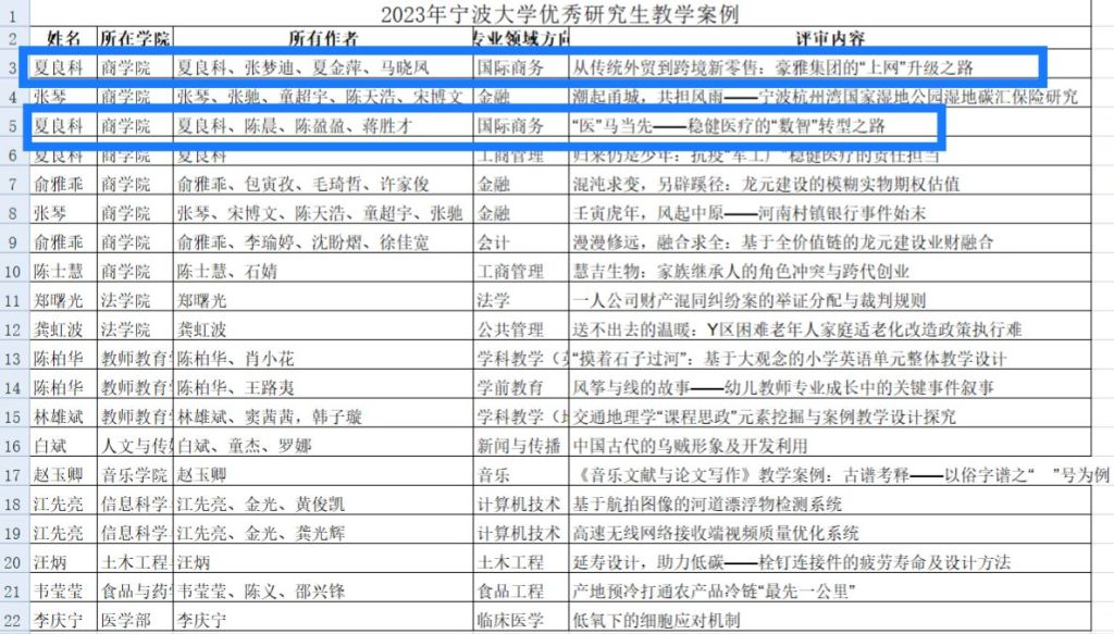 优秀研究生教学案例评选结果公布,MIB学位点教师夏良科与本专业研究生合作的两篇案例获评优秀案例。特此祝贺!