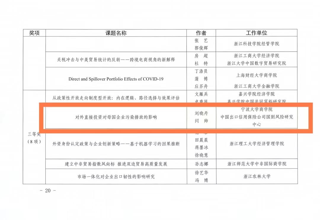 本次年会,还举行了学会2023年度国际经济贸易研究优秀成果奖颁奖仪式。我校MIB学位点刘晓丹老师获评优秀成果三等奖。