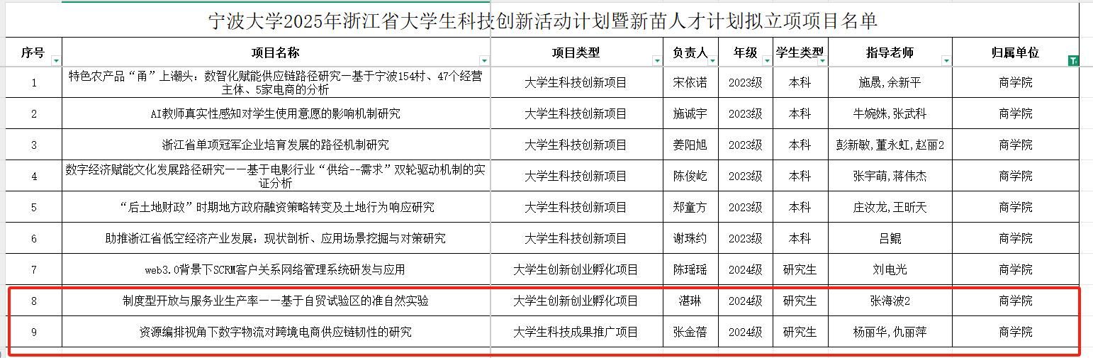 3月7日,2025年浙江省大学生科技创新活动计划暨新苗人才计划立项结果正式公布。24级国际商务专业研究生张金蓓、湛琳同学作为项目负责人,其项目在大学生科技创新项目中成功立项,展现了17live