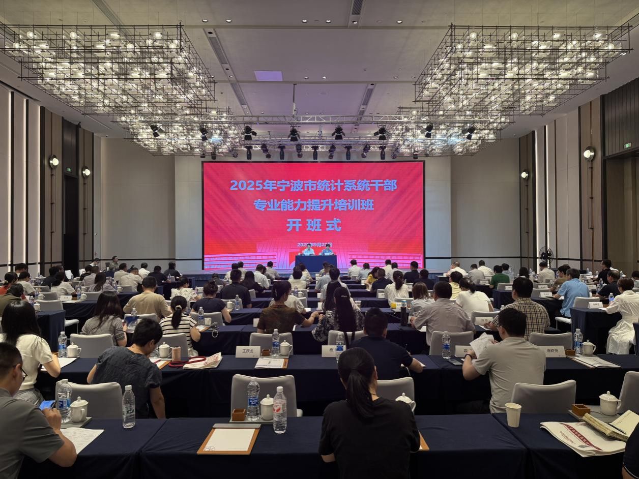 承办的 “2025 年宁波市统计系统干部专业能力提升培训班”正式开班。宁波市统计局党组书记、局长许婷娅主持开班仪式,宁波市委常委、常务副市长、市政府党组副书记赵海滨出席并作动员讲话,各县市区常务及全市统计系统干部及学院相关负责人参加开班式。