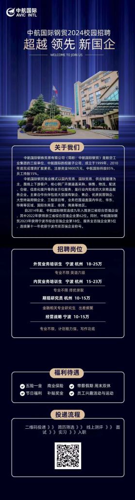 中航国际钢铁贸易有限公司2024届校园招聘简章