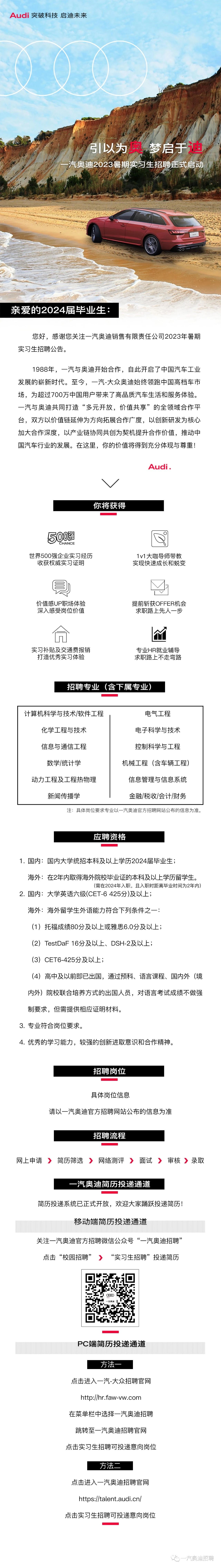 一汽奥迪销售有限责任公司2023年暑期实习生招聘公告