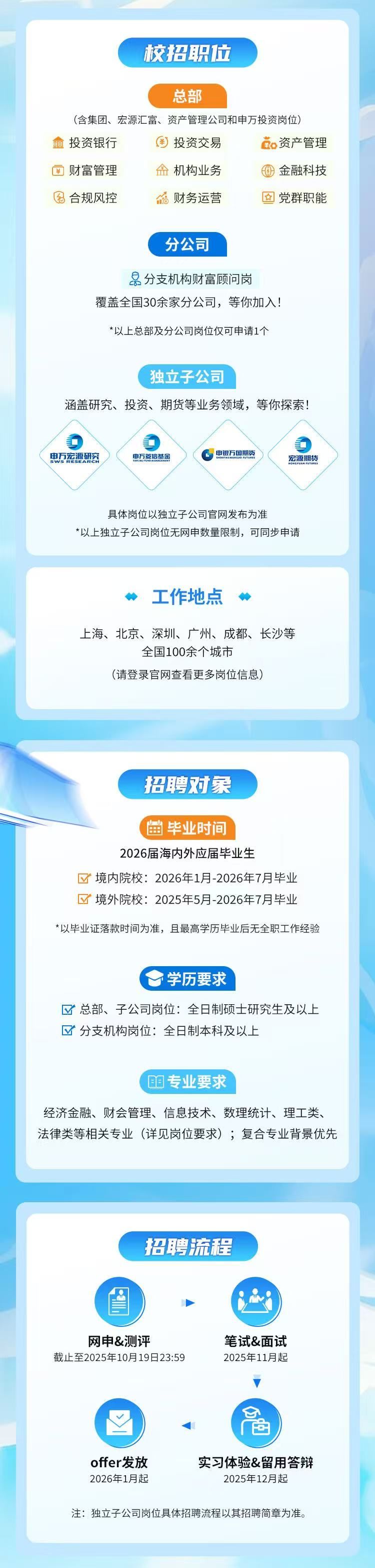 申万宏源集团校园招聘简章