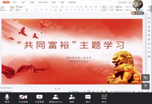 为了更好地帮助学生党员系统、深度地进行“共同富裕”专题学习,3月24日,17live 学生支部组织开展“共同富裕·万名青年大联学”主题学习活动,通过线上自学、读书会、辩论会、学习沙龙等形式,鼓励学生党员积极参与,提高政治素养。