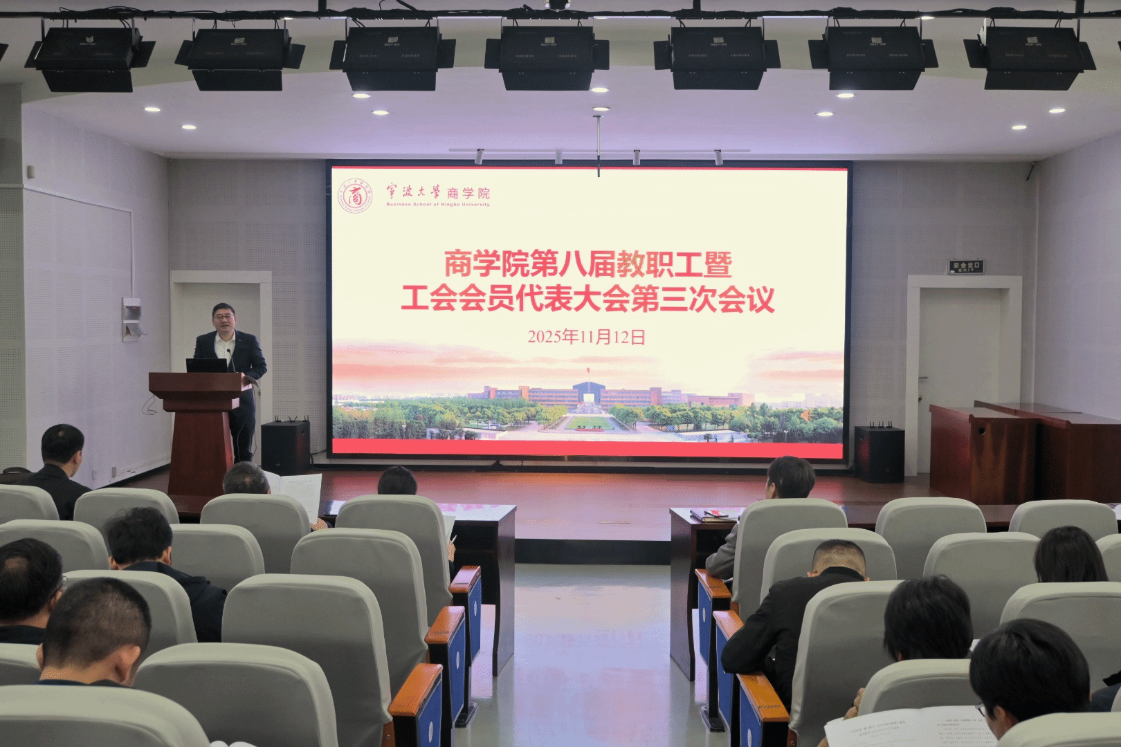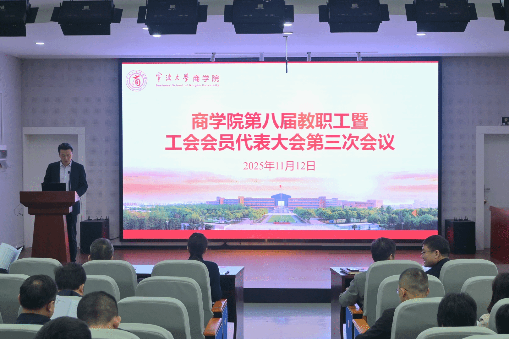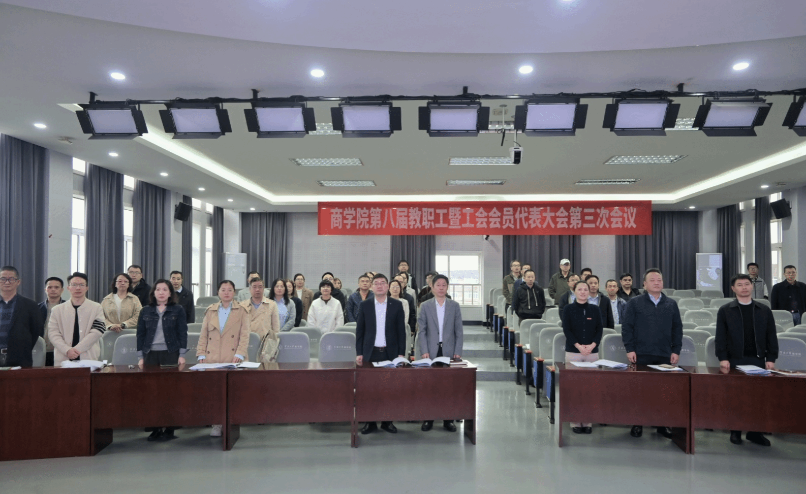 经学院党委同意并报请学校工会,17live 第八届教职工代表大会暨工会会员代表大会第三次会议于11月12日下午在17live 501报告厅举行。会议由院分工会主席朱一鸿主持,学院党委全体委员和教职工代表、工会会员代表参加了会议。