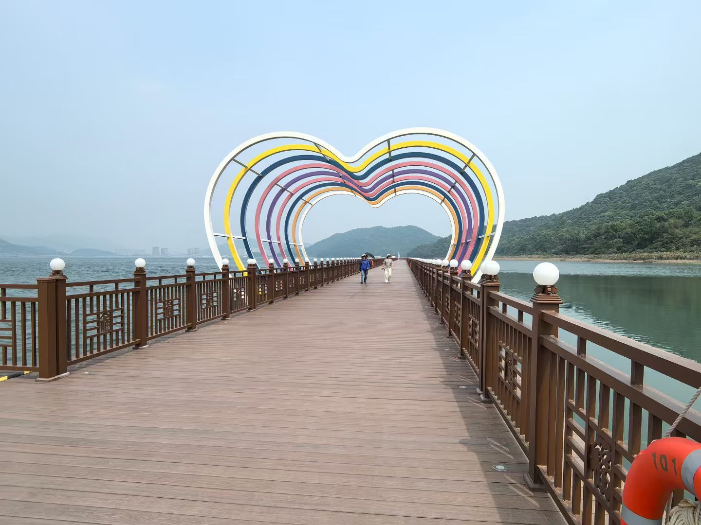 午后,大家漫步至天妃湖,享受了宁静的湖畔时光。天妃湖拥有东海近岸中唯一的清海资源,水静面蓝,风景如画,被誉为“海上西湖、浙江三亚”。湖岸边的草坪是露营、烧烤、野餐的绝佳去处,天妃湖福桥是海上车行文化景观休闲浮桥,天妃湖福桥全长2703.51米。在设计上,该桥以“爱情”为主题,融入了“一见钟情,一生锁爱”的美好寓意,生动展现爱情从相识、相知、相恋到相守的浪漫历程。