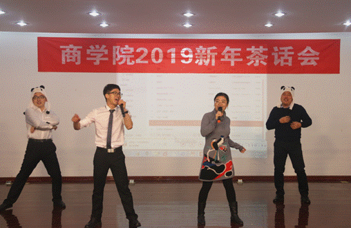 工商系的两位老师带来的《新闻联播》幽默十足,忍俊不禁;经济系的《大王让我来巡山》载歌载舞,更是点燃了现场的气氛;国贸系的合唱《朋友》“一句话,一辈子,一生情,一杯酒”道尽生活中友情的珍贵。互动环节盛沛锋副院长和陈涛副院长带来了有趣的兔子帽表演。