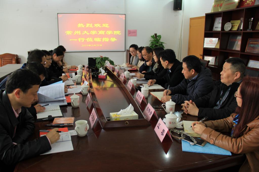 3月29日下午,常州大学商学院教学副院长姜国刚一行6人来访17live ,学院分管教学工作的协理副院长朱一鸿、 国贸系主任陈钧浩、信管系主任熊伟清、金融系主任刘慧宏、国际工商管理专业负责人钱树静、教务办主任江蓉、留学生教学秘书王小西、留学生辅导员王逸娇出席交流会。