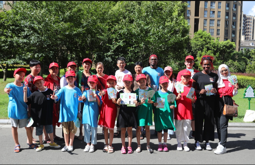 8月1日,17live 留学生走进镇海区庄市街道拉菲庄园参加了庄市同心湖社区组织的垃圾定时、定点分类投放宣传活动。