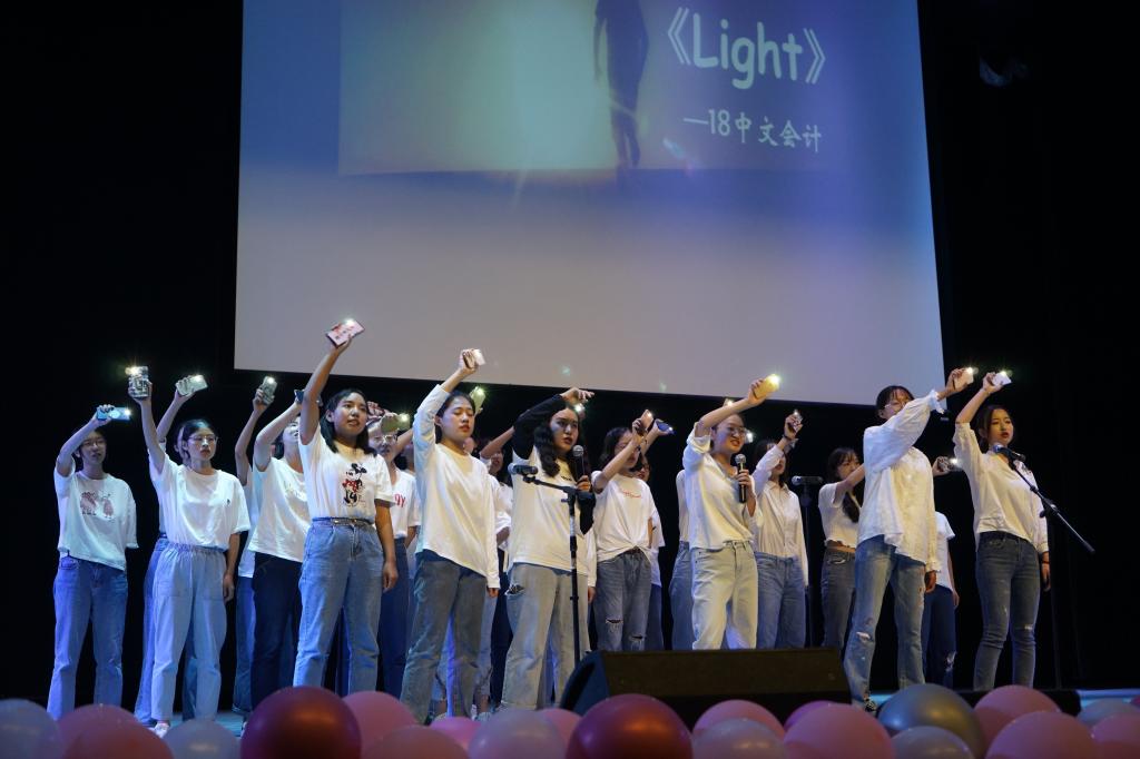 晚会在19级工商管理中加学分互认)班的歌曲串烧《We are here》中拉开了帷幕。舞蹈、小品、情景剧、诗朗诵、合唱等一系列别出心裁的节目纷纷上演。值得一提的是,留学生乐队及研究生舞蹈展现了不一样的风采。18信管将流行音乐与戏曲巧妙结合,更是将晚会推向了高潮。其间还穿插了猜歌名小游戏及微信摇一摇抽奖环节,同学们热情高涨,踊跃参与,现场气氛十分活跃。