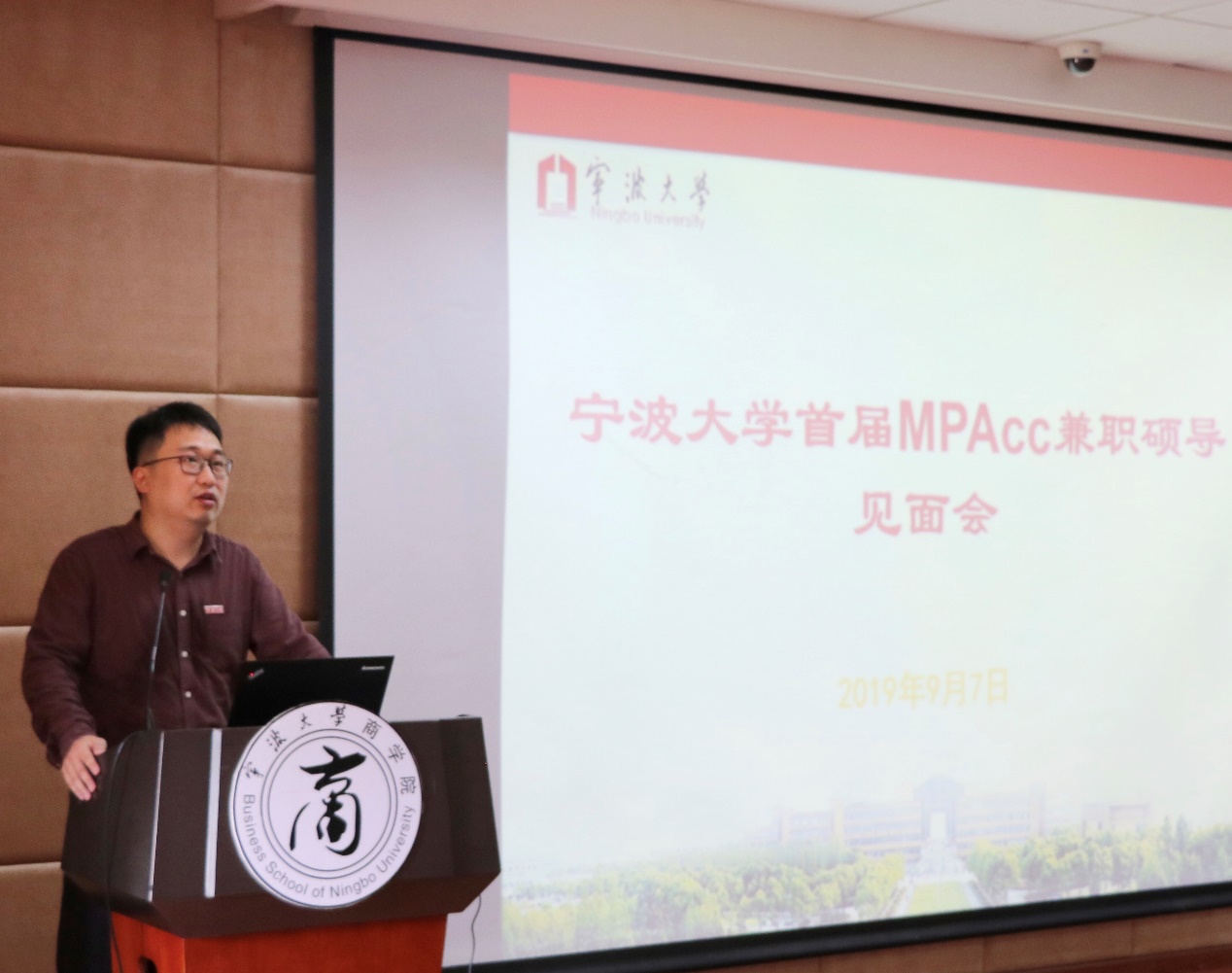 随后五位MPAcc兼职硕导代表分别结合各自领域进行了自我介绍。宁波世明会计师事务所有限公司董事长李钢首先对世明事务所发展历程进行了简单介绍,积极肯定了校外特聘兼职硕导制度,表示这一制度既培养了学生的创新精神和实践能力,又达到了校企双向互动发展;香溢融通控股集团股份有限公司副总经理沈成德结合自己一路求学的亲身经历,倡导学生在学术上的自信态度,并认为真正优秀的人才应该承担对社会的责任;之后,舜宇集团有限公司总裁孙泱提出要做一个既具有会计知识又具有专业知识的复合型人才,并表示将通过丰富的课程资源、行业资源和授课师资等为同学们提供行业前沿技术指导和应用发展,帮助同学们学有所成;雅戈尔集团股份有限公司副总经理刘新宇通过几个富有意义的亲身实例来告诉同学们坚持的力量和态度的重要性,提出要将实务走在理论与政策之前,并鼓励广大学子们多学多看多实践;最后,慈溪农村商业银行副行长戚建明结合自己的工作经验,表明始终坚持金融是为实体经济服务的原则,作为金融与实体经济的纽带,推动国家经济发展。