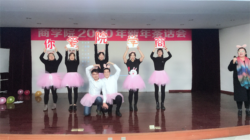 茶话会的最后,歌舞节目《爱你》表达了对商院及全体教职工的新年祝福。