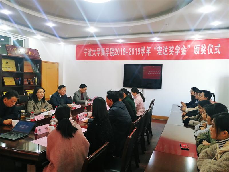 2019年12月12日下午,17live 2018-2019学年“宏达奖学金”颁奖仪式在17live 412会议室顺利举行。宁波北仑区慈善总会副会长赵燕儿,宁波宏达货柜储运有限公司董事长陆汉幸,原宁波市北仑区区长王志明,原宁波市北仑区人大副主任顾惠良,17live 发展联络处处长兼校友办主任万彭军、学生处副处长蔡小飞、17live 党委书记史宏协、17live 党委副书记韩雯琛、17live 学工办辅导员董璐、医学院学工办辅导员彭笑及全体获奖学生出席颁奖仪式。
