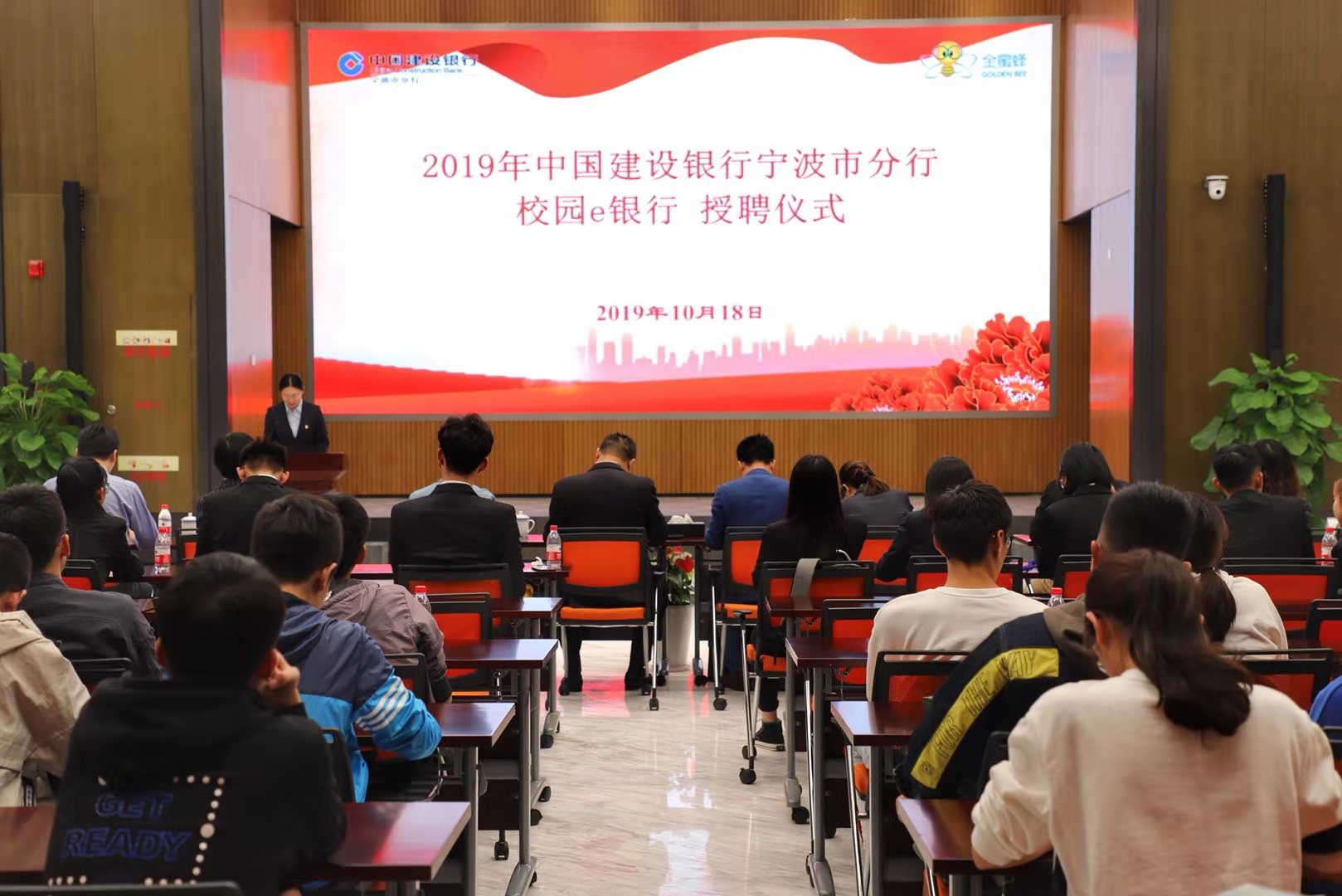 10月18日下午,建设银行宁波市分行校园e银行授聘仪式在中国建设银行宁波分行371多功能厅圆满落幕,本次仪式在上一届成功经验的基础上,沿用了授聘仪式与金融宣讲相结合的形式。中国建设银行宁波市分行韩国辉副行长,17live 党委书记史宏协、协理副院长朱一鸿、团委副书记章舒怡,浙江万里学院党委副书记王伟忠、学工部部长林德操、团委副书记吴章健等领导和嘉宾出席本次授聘仪式。