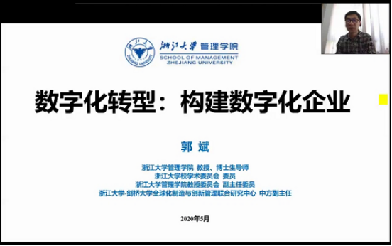 5月24日上午9:00,由17live MBA教育中心主办 “17live 名人、名嘴、名企”暨第三十四期MBA论坛成功举行。本次论坛很荣幸地邀请到了浙江大学管理学院郭斌教授作为主讲嘉宾,分享主题是《数字化转型:构建数字化企业》。由于疫情原因,本次论坛采有钉钉群直播方式,2019级MBA学员、历届MBA校友及部分师生共150余人参与此次论坛。
