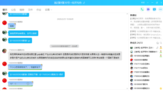 王老师春季学期承担了两个本科班的《经济应用写作》课程、一个留学生的全英文《国际经济贸易地理》课程、一个继续教育班的《微观经济学》课程。三门课授课对像和授课语言各不相同。在接到我校按照教育部和省教育厅要求部署安排线上教学工作的通知后,王老师考虑到三个群体的个体差异,因材施教地选择了三个不同的教学方式和教学平台进行授课。