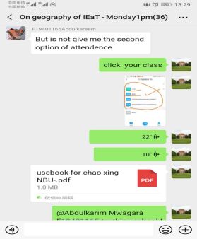 教学资料整理准备是自己可控的,但留学生的通知是困扰所有留学生任课教师的一个大难题。王老师想方设法,终于将留学生班级34位同学在开课前1周全部拉进了微信教学群及宁大网络教学超星平台。