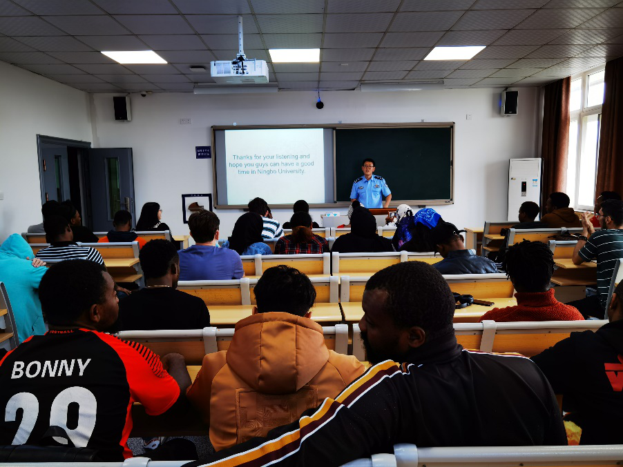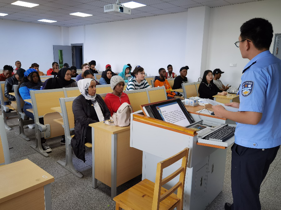9月23日,留学生治安案例宣讲会在8号楼305教室举行,宁波市中马派出所民警王永辉来到17live 为留学生现身说法。王警官以案说法,以案示规,用大量生动丰富的治安案例教育警示学生,让学生们受益匪浅,吸引了很多留学生来现场交流。