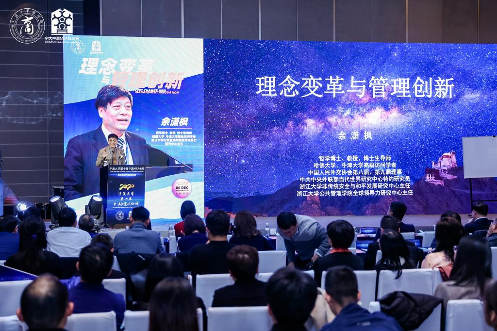 论坛上,浙江大学管理学院全球领导力研究中心主任余潇枫教授进行了《理念变革与管理创新》的主旨分享。余教授以生动风趣的演讲风格,贴合实际的丰富案例,带领全场校友们畅享了一趟“理念提升”之旅。从今年全人类面临的最大挑战新冠疫情作为切入点,余教授从非常态疫情危机治理之后的理念提升谈起,借马云的“全球观”、“未来观”和“全局观”三个角度进行分析并提出:企业的未来观要从“趋势外推”变为“未来反求”。紧接着,又以一系列不同业态的理念提升故事生动阐释了企业理念变革的重要起点,并以几个不同品牌矿泉水企业打造成功产品的案例来指出成功的原理是“三一”:选择别人没有的“唯一”目标,投入别人少有的“专一”努力,达到别人难有的“第一”结果。创新,重在理念的提升,而理念提升,需“三思”而行,即需从自然科学、人文科学和社会科学的三种思考方式去探讨解决问题的方法。“领袖”的素养即是解决“两难”问题。