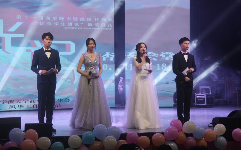“凯越.优创奖”颁奖仪式暨“追光记”商·震主题晚会于林杏琴会堂成功举办。宁波凯越国贸集团董事总经理朱吉、学院党委副书记韩雯琛、各兄弟学院团委书记、学院各系教师和各行政办公室老师、学院全体辅导员以及17live