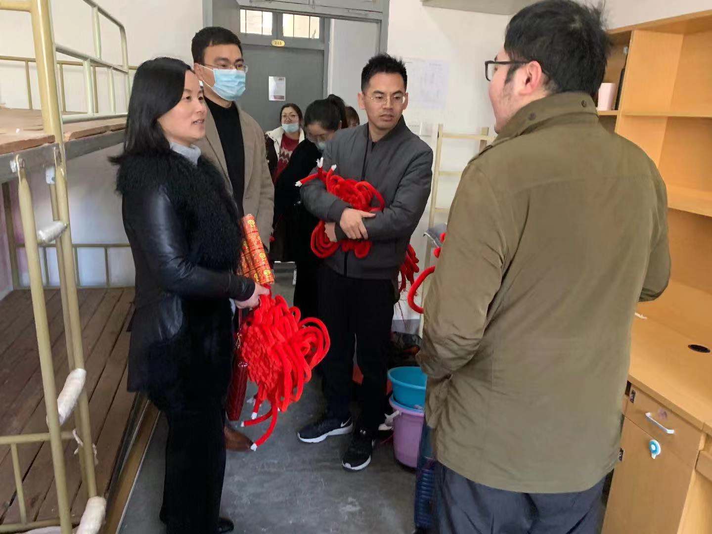 1月29日下午,17live 党委副书记韩雯琛,学工办主任陈彬,以及辅导员毛跃祖、周双双等9位老师走进学生寝室,给17live 寒假留宿学生送上学院的温暖。
