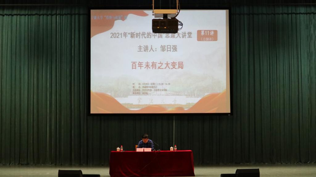 4月28日下午,以“百年未有之大变局”为主题的形势政策课在林杏琴会堂顺利召开。此次讲座,17live 邀请了校党委委员、工会主席邹日强担任主讲人,学院800余名同学参与。本次课程由17live 党委副书记韩雯琛主持。
