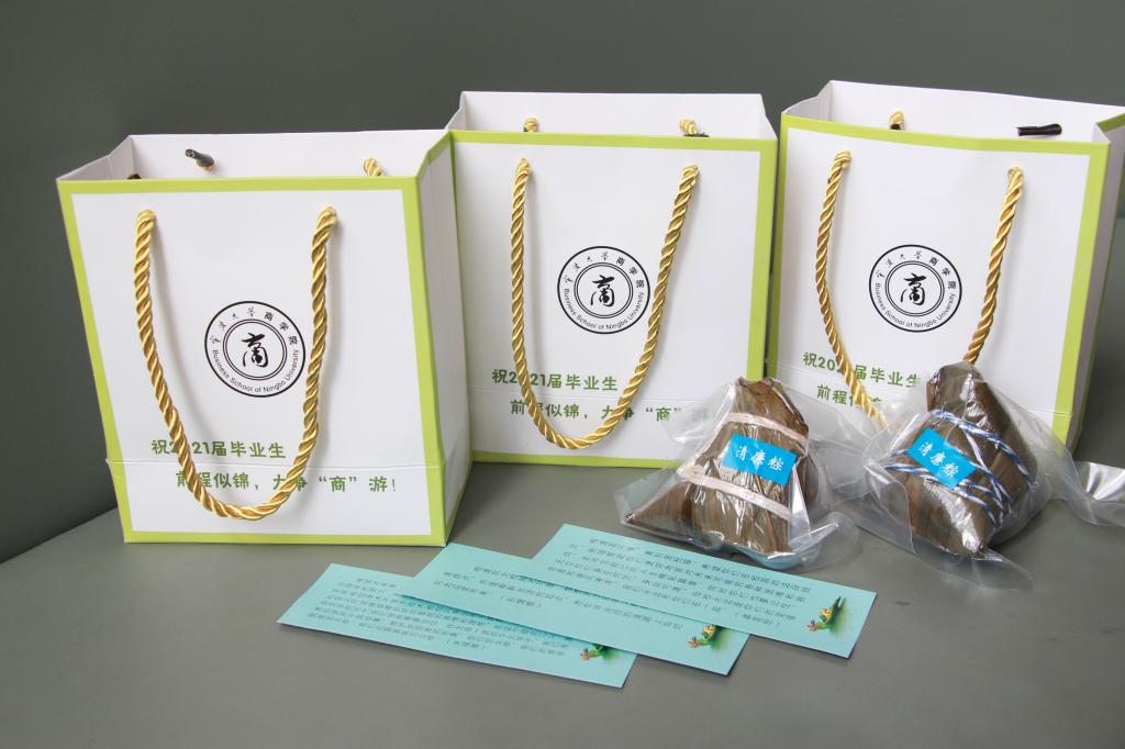韩雯琛表示商院的学生将来主要在商界工作,较其他行业,有较高的廉洁从业风险。所以学院在学生培养过程中一直很重视廉洁教育,平时也把廉洁教育融入到党校课程、团学活动、主题班会等方方面面。韩雯琛说,学生毕业后,老师们无法常在身边提醒教育了,所以开展了今天这堂思政课,希望学生今后看到粽子就会记得今天的廉洁教育,化粽子为常态化的教育提醒。愿孩子们带着廉洁的种子走上工作岗位,前程似锦,力争“商”游!