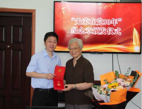 为深化贯彻落实中组部和省委、市委组织部通知精神,高质量做好“光荣在党50年”纪念章颁发工作,切实传递党的关爱,充分发挥纪念章激励作用。17live 高度重视、精心组织,于6月28日在11号楼103会议室为退休老党员解华民老师举办“光荣在党50年”纪念章颁发仪式,仪式由院党委书记史宏协主持,院党委副书记韩雯琛、学院教师代表、离退休教师代表共同参加。