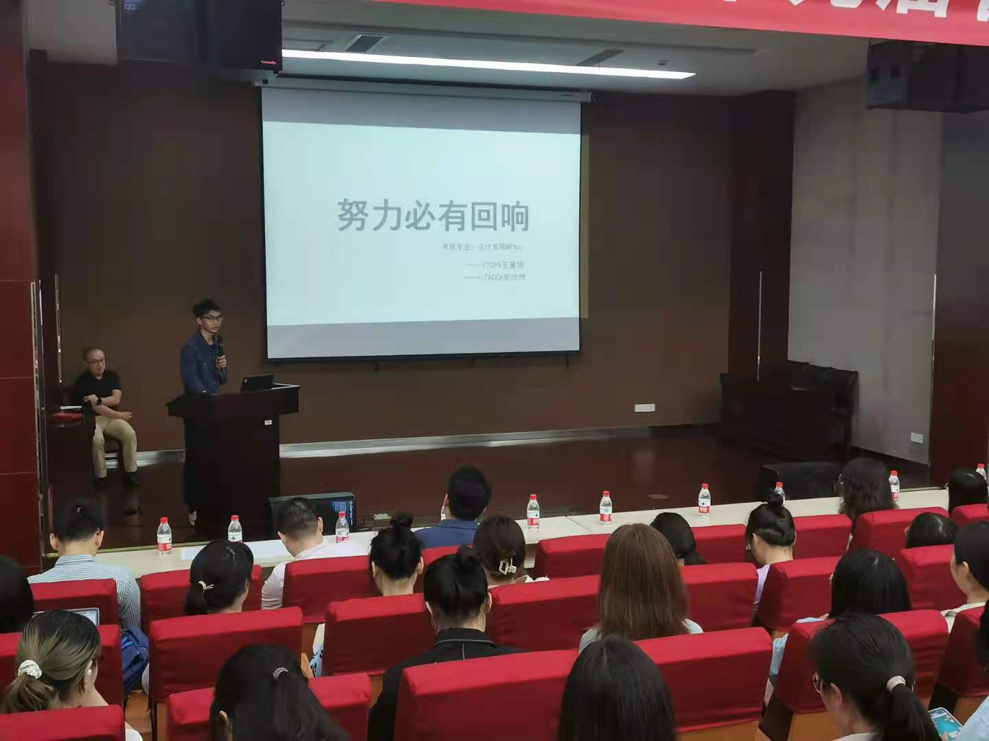 随后,陆智强就本专业考研留学形式、专业特色鼓励同学们积极考研、留学。陈翼然向大家讲述了目前17live 会计专硕前景及同学们本校考研所具备的优势。