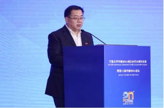 2021年11月21日下午,“传承树经典,创新赢未来”17live 中澳MBA项目办学20周年庆典暨第11届中澳MBA论坛成功举办。本次活动由17live 主办,17live 中澳MBA校友会承办。17live 副校长汪浩瀚,浙江大学副校长黄先海,17live 原校长聂秋华,南京大学经济增长研究院院长沈坤荣,宁波市经济与信息化局副局长童鸿根,17live 国际处处长顾耀东,17live 继续教育与培训处处长胡亚娥,17live 校友办公室主任胡宝华,17live 院长金祥荣,中澳MBA项目创始人邱妘,中澳MBA校友会会长沈功灿等嘉宾出席本次论坛。活动还特邀了奥运冠军孙杨,与190多名校友齐聚一堂,共同庆祝中澳MBA项目办学20周年。