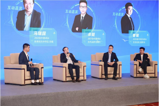 接下来是两场精彩的圆桌对话。第一场圆桌对话由中澳MBA校友会会长沈功灿主持,邀请新秀丽大中华区总裁马瑞国、白禾品牌创始人余挺以及艾优控股董事长曾瑞围绕“后疫情时代的品牌突围之路”展开讨论。马瑞国总裁分享了新秀丽品牌如何在后疫情时代扩大品牌的生存空间,产品创新以及私域流量的重要性等。余挺董事长分享了白禾品牌的创办故事以及后疫情时代对品牌供应链的影响。曾瑞董事长提到了疫情之后企业发展中心由渠道为中心到消费者为中心的转变。