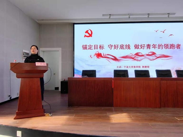 以“人生的黄金时期在青年,如果把人生比作自然的四季,青春就是最明媚的盛夏时节。我们这一代青年人,该如何书写青春?”这一问题为引言,韩雯琛开展了以《锚定目标 守好底线 做好青年的领跑者》为主题的讲座。她向学员们展示了习近平总书记青年时期的事例,深入浅出地为学员们讲解了如何树立理想信念,并告诫同学们追逐理想的道路必定布满荆棘,只有勤学实干才能达成目标。