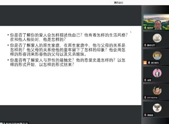 12月17日晚19:30分,商院工会心理奇葩学在线邀请了婚姻家庭心理咨询师杨林竺老师,做题为“爱我所爱、爱其所爱—论婚姻的保鲜与成长的分享交流会。