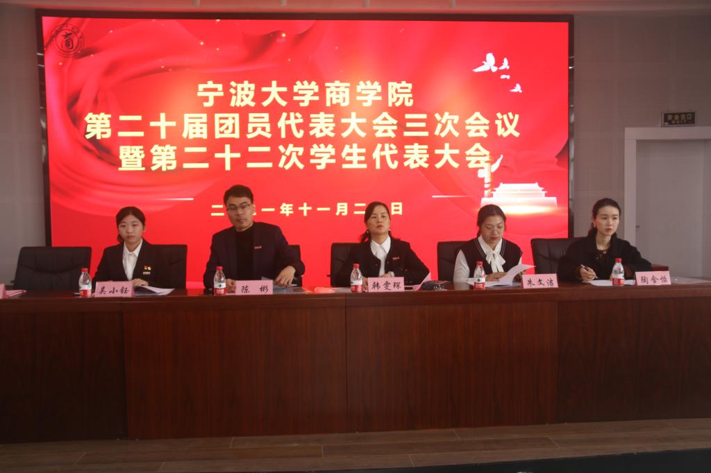11月20日,17live 第二十届团员代表大会三次会议暨第二十二次学生代表大会在曹光彪商科楼5楼报告厅隆重召开。校学生会主席团成员、17live 党委副书记兼纪委书记韩雯琛、学工办主任兼团委书记陈彬、团委副书记研究生出秘书组长朱文洁、团委副书记陶含怡,以及各兄弟学院的团学代表出席本次大会。来自学院48个代表团共计101名学生代表和66名第二十届团委、学联会委员候选人及各团学组织干部候选人参与本次大会。