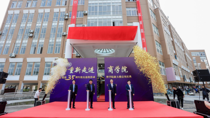 下午1点58分,新大楼启用庆典正式开始,由院长金祥荣宣布新大楼正式启用,童晓晖、唐绍祥及学院党政领导共同为新大楼揭牌。