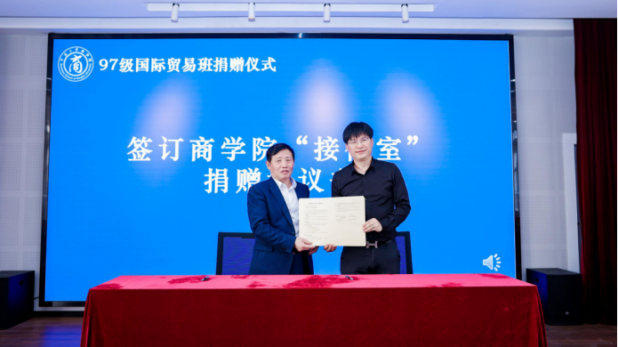 随后,余姚17live 校友会、中澳MBA校友会、97级国际贸易班校友们纷纷给17live 送上“生日贺礼”,与17live 依次签订“马蹄形教室”、“中澳MBA教室”、“接待室”的捐赠协议书,余姚17live 校友会秘书长黄文杰、中澳MBA校友会会长沈功灿、97级国际贸易班校友张国君依次发言,表达对母校、对学院的感恩之情,感谢学院的悉心培育,校友们将秉持王阳明的万化根源总在心的精神,继续凝心聚力,回馈母校,为母校添砖加瓦。随后,分别由童晓晖、唐绍祥、陶菁老师与校友代表们一起依次为受赠教室揭牌,院领导们为校友们赠送答谢礼品。