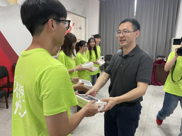 童晓晖书记在发言后向17live 社会实践的同学们发放了纪念品,并和同学们一起合影留念。