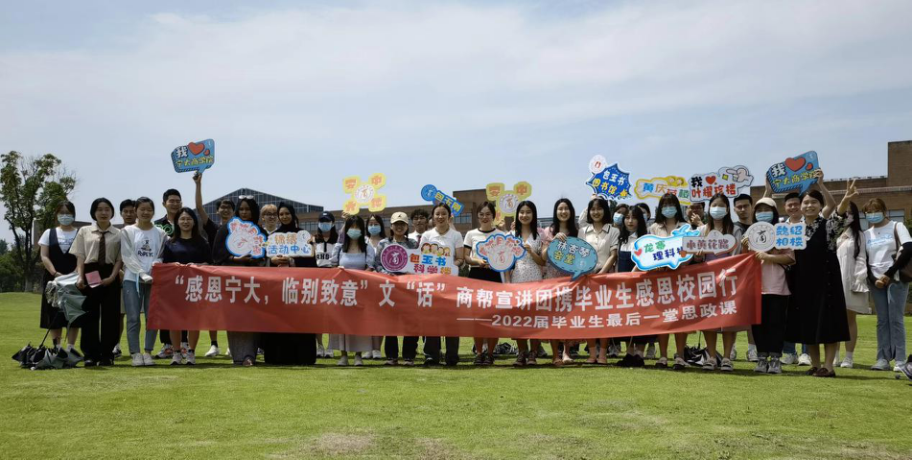 天下没有不散的筵席,但是人生何处不相逢,商院学子与宁大的故事终会有续篇,在最后一堂思政课上,同学们重游校园一次校园行,细听宁波帮的故事,培育爱校明史感恩之心,愿毕业生们山水万程,皆有好运;跃入人海,各自灿烂!
