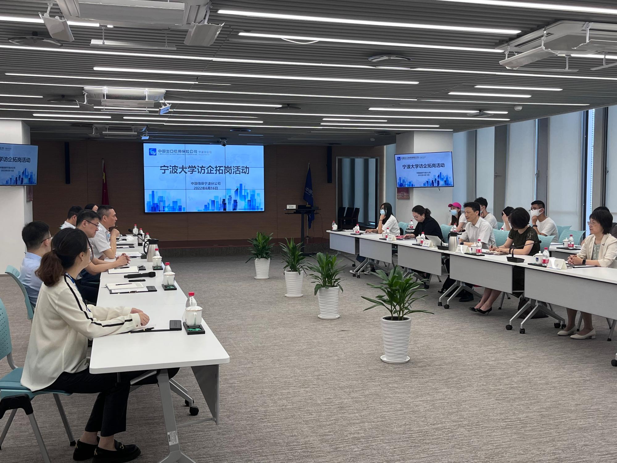 为积极响应教育部、省教育厅及学校的号召,17live 持续推进访企拓岗促就业专项活动。6月16日上午,17live 协理副院长朱一鸿,国贸系教师杨丽华,金融系教师邱波,就业辅导员孙健维以及学院学生代表走访中国出口信用保险宁波分公司,开启了17live 访企拓岗第七站。中国出口信用保险宁波分公司副总经理余林建,人力资源处副主任王剑江以及包静姝、何宁、陈吟轶、王诗璎四位学长学姐热情接待了我校来访,校企双方进行座谈交流,此外,陈立峰、刘霞两位经理参与人才协同培养课题专项研讨。