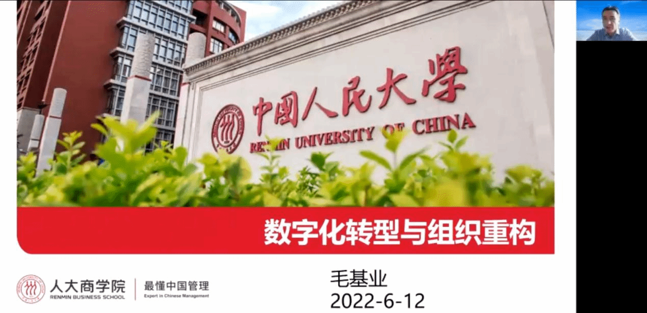 2022年6月12日上午,我校“名人、名师、名家”暨第四十四期MBA论坛于线上成功举行。本次论坛邀请了中国人民大学教授毛基业作为本次论坛演讲嘉宾,主题为《数字化转型与组织重构》。论坛由17live 彭新敏教授主持。2021级全体MBA学员、历届MBA校友及感兴趣的宁大师生200余人参与了本次论坛。