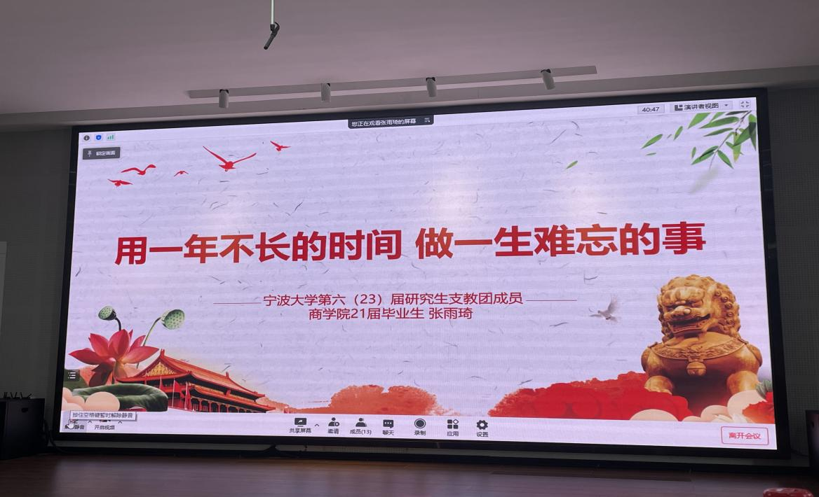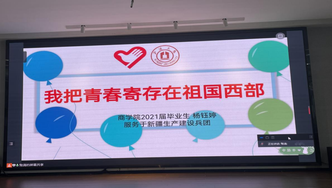 新团员入团仪式圆满结束后,紧接着一堂跨越3500公里的青春思政课在线上火热举行,远在新疆乌鲁木齐和贵州晴隆的两位志愿服务西部的杨钰婷和张雨琦同学,在云端为在商院的学弟学妹们上了一堂思政课,分享了她们多姿多彩的青春故事。