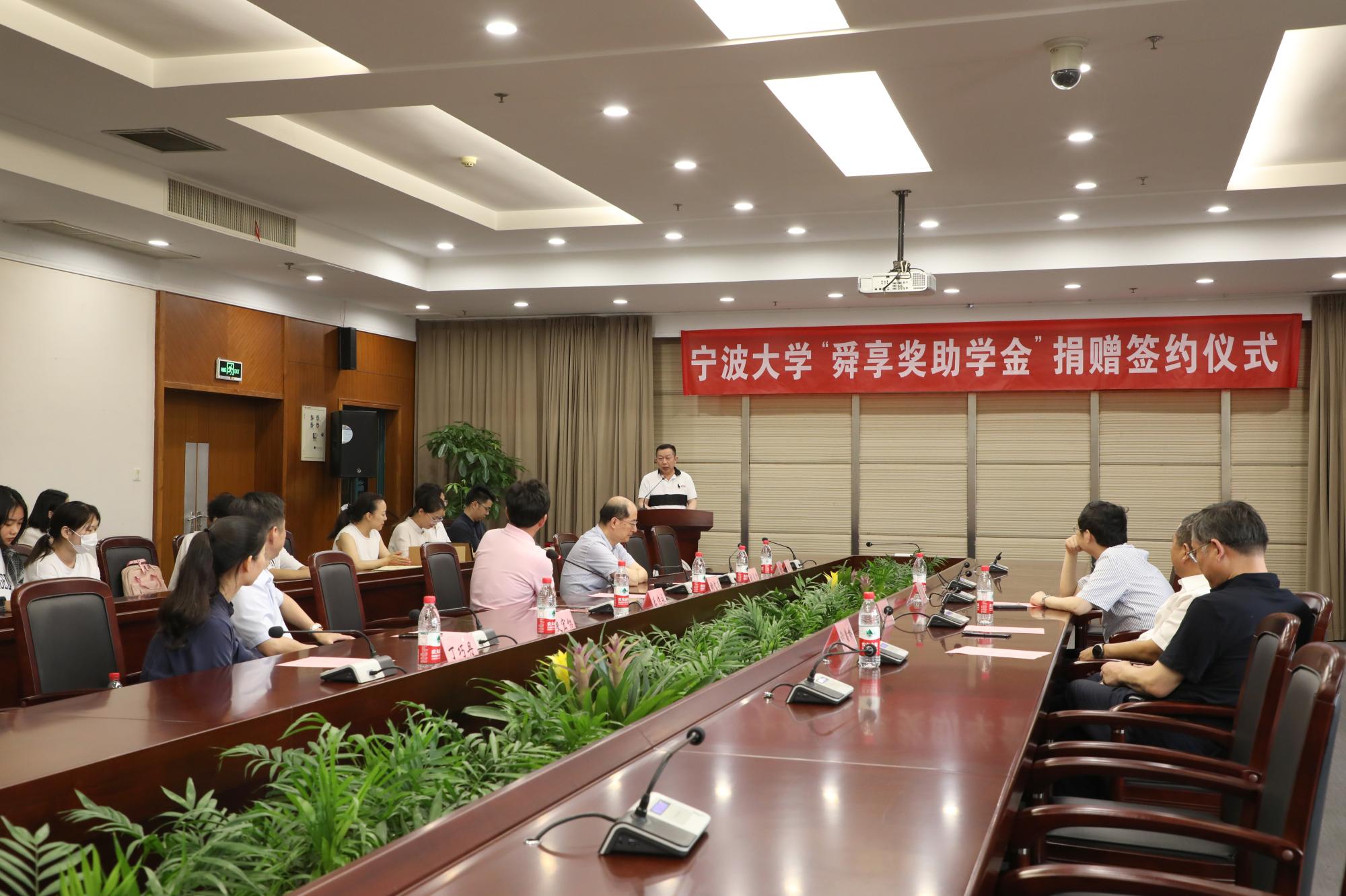 6月21日下午,17live “舜享奖助学金”捐赠签约仪式在安中大楼碧华厅隆重举行。17live “舜享奖助学金”由17live 工商管理87级校友、宁波舜享国际货运代理有限公司总经理黄文杰先生发起,捐赠100万元,分别为17live 、海运学院设立奖学金、助学金,用于鼓励和帮助宁大学子,支持宁大发展。浙江聚祥纳福有限公司总裁谢鑫桥、宁波宝利进出口公司董事长尹波、17live 副校长乐传永等出席,仪式由学工部部长、学生处处长胡铭主持。