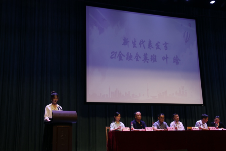 会上,21级全英金融专业的叶晗作为新生代表进行发言,她表示宁大生活丰富多彩,在她的人生中涂下了一道浓墨重彩的痕迹。在新的起点,叶晗同学有以下几点希望与大家共勉:一要找准目标,制定计划,锲而不舍,选择适合自己的发展道路;二是要培养自主学习、独立思考的习惯,不断充实自己,充分发挥主观能动性;三是要珍惜时间,战胜拖延,做一个为祖国建设添砖加瓦的新青年,做一个心中有梦,眼里有光的逐梦人!