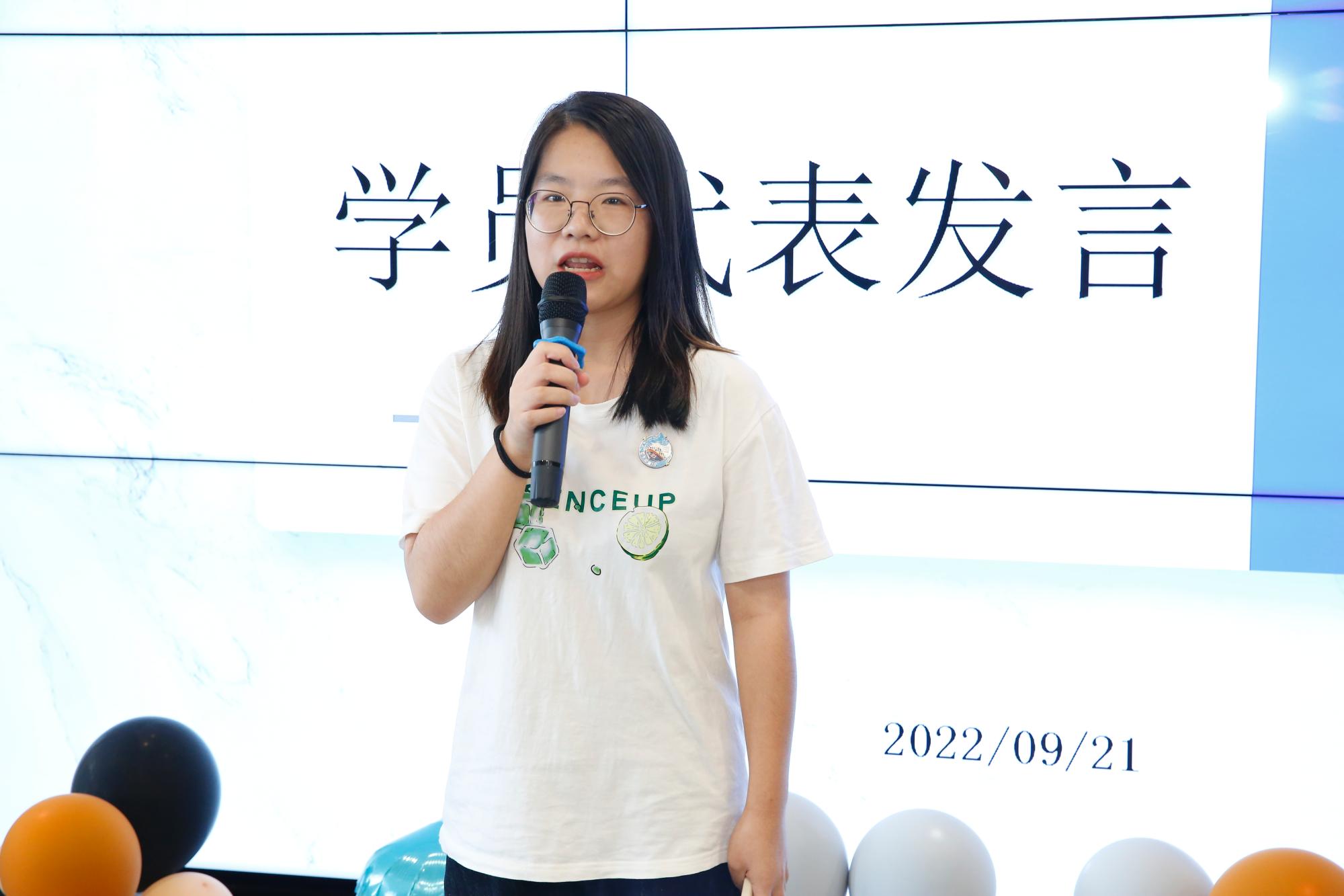 紧接着,学员代表张子怡发言,分享活动的感悟。她表示在此次训练营中,线上线下活动非常丰富,个人对外贸行业有了深入认识,提升了自己的就业能力,结交了新的朋友。最后,他再次感谢赛尔集团的精心组织和倾心培养。