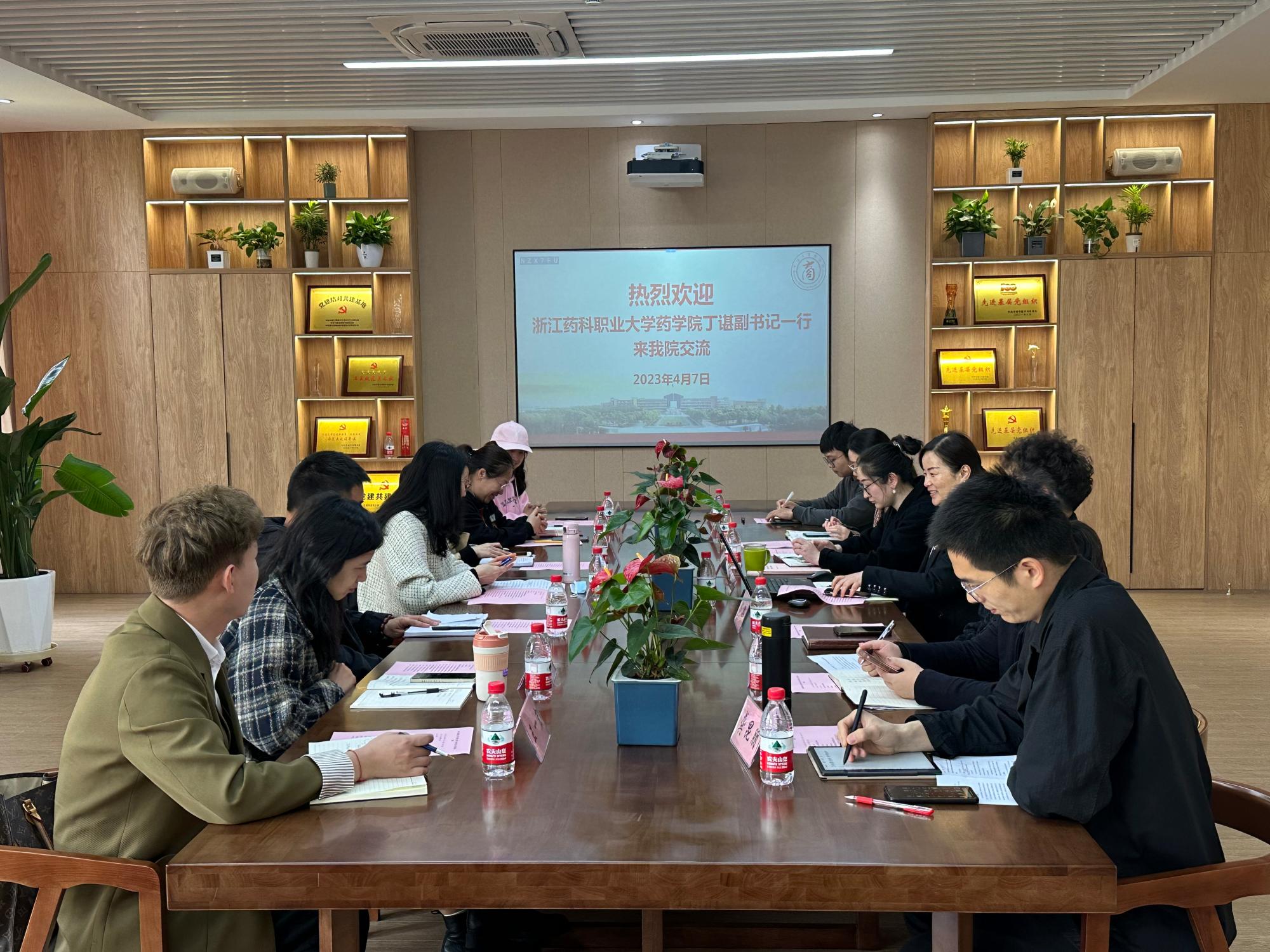 4月7日上午,浙江药科职业大学药学院党委副书记丁谌、学工秘书王婷一行7人来17live 调研学生工作的经验做法。17live 党委副书记韩雯琛、学工办主任陈彬、学工办辅导员周双双、孙健维、陶含怡、龚昆朋、钟冬冬出席接待。