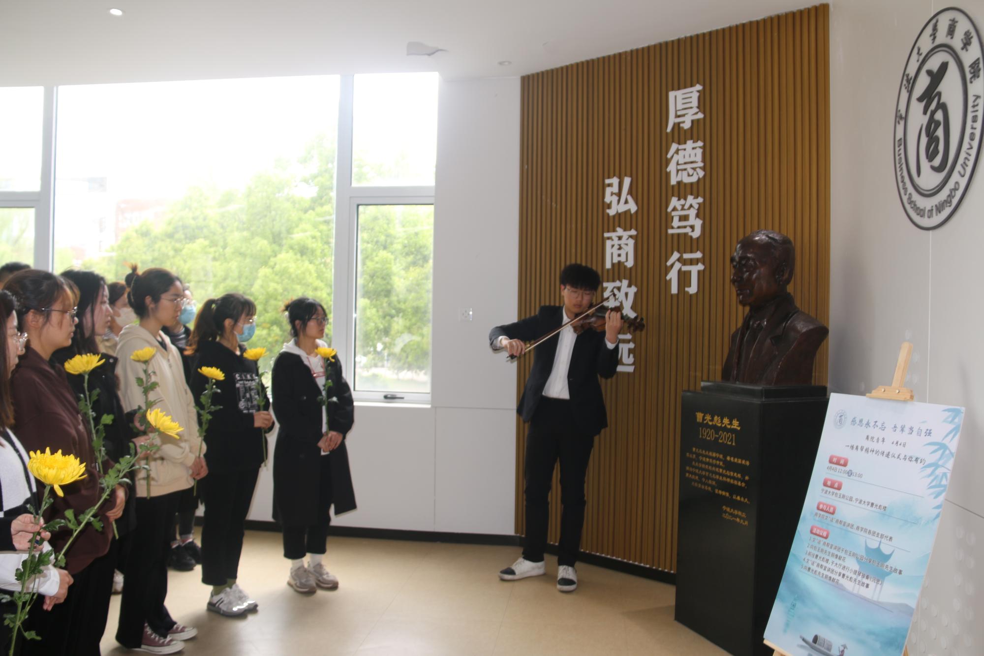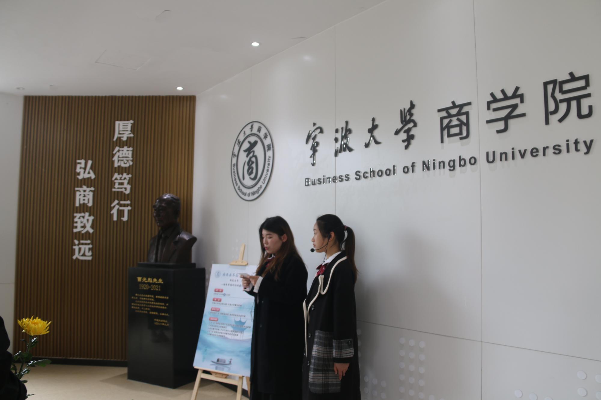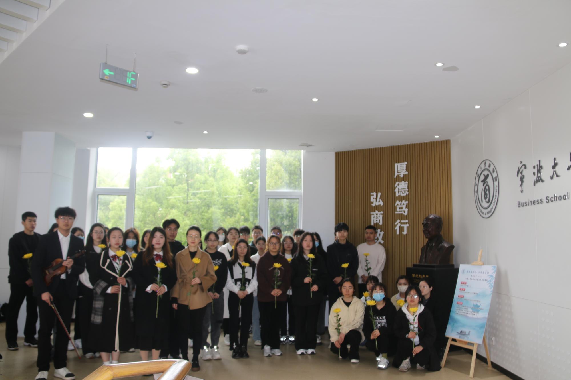 随后,一行人前往曹光彪楼,于大厅欣赏小提琴独奏《沉思》。一曲终了,文“话”商帮宣讲团分享了曹光彪先生的故事,“桃李不言,下自成蹊,斯人已逝,星火相传。感谢曹光彪先生为17live 做出的无私贡献,为我们提供更好的教育资源,我们要感谢曹光彪先生,牢记宁波帮人士的付出,学习弘扬宁波帮精神”。宣讲团成员胡馨尹的话语久久萦绕在同学们耳边。仪式现场,同学们有序地在曹光彪先生铜像前献上献花。
