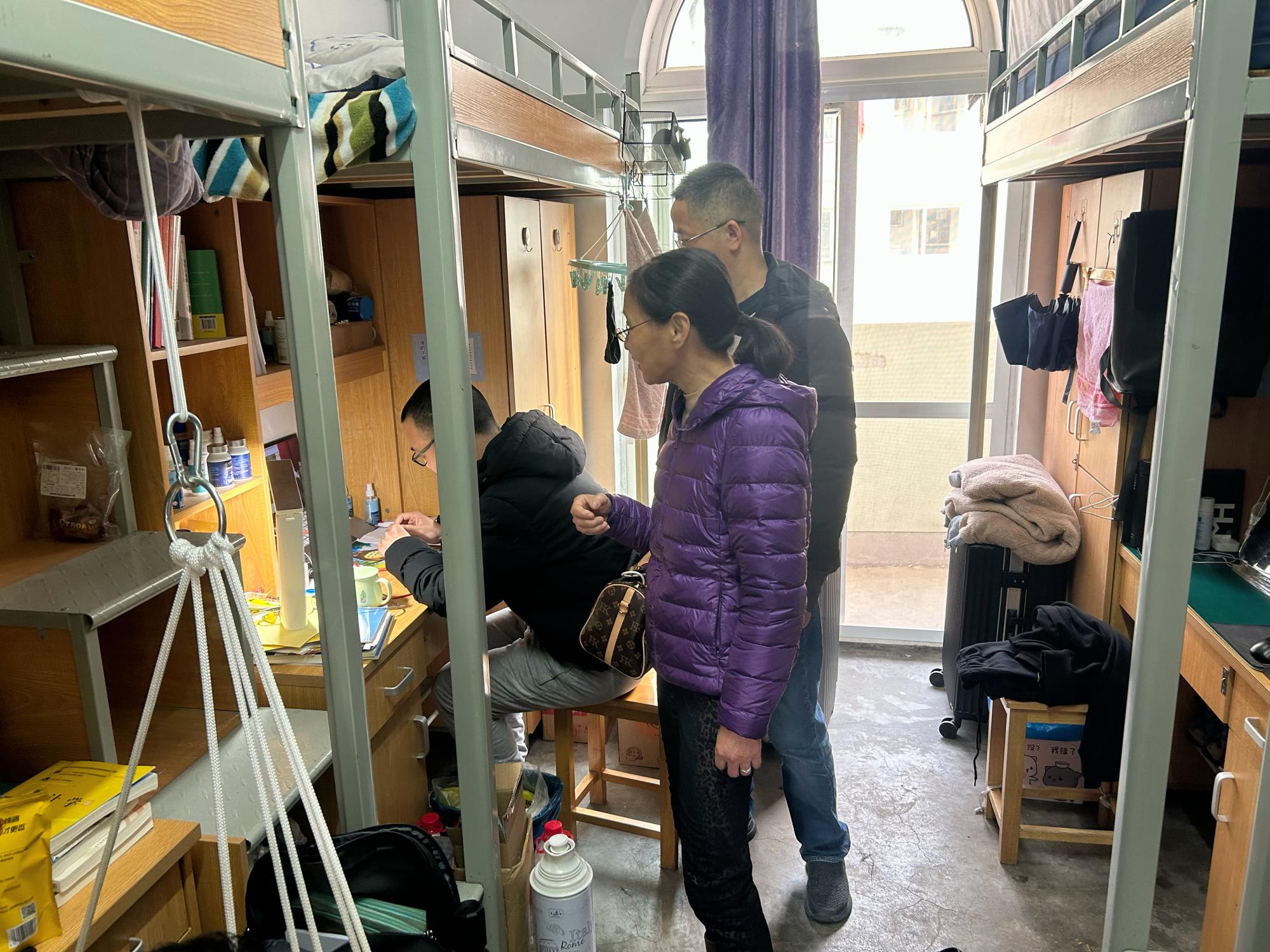 为了深入了解新学期同学们返校报道情况与生活、学习状态,加强学生寝室安全管理工作,2月17日,学院党委副书记韩雯琛、班主任和辅导员一行前往学生寝室与同学们进行了亲切交流。