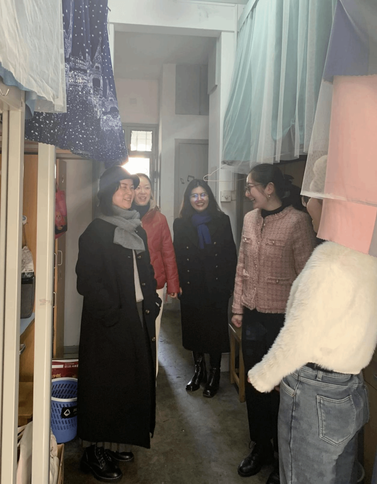 在寝室走访过程中,老师们与同学们亲切交流,询问了同学们假期返校后的生活和学习情况,了解同学们期末备考和学期规划。韩雯琛副书记鼓励大家勤奋学习、科学备考、诚信考试,以积极的状态投入到新学期的学习与生活中来。